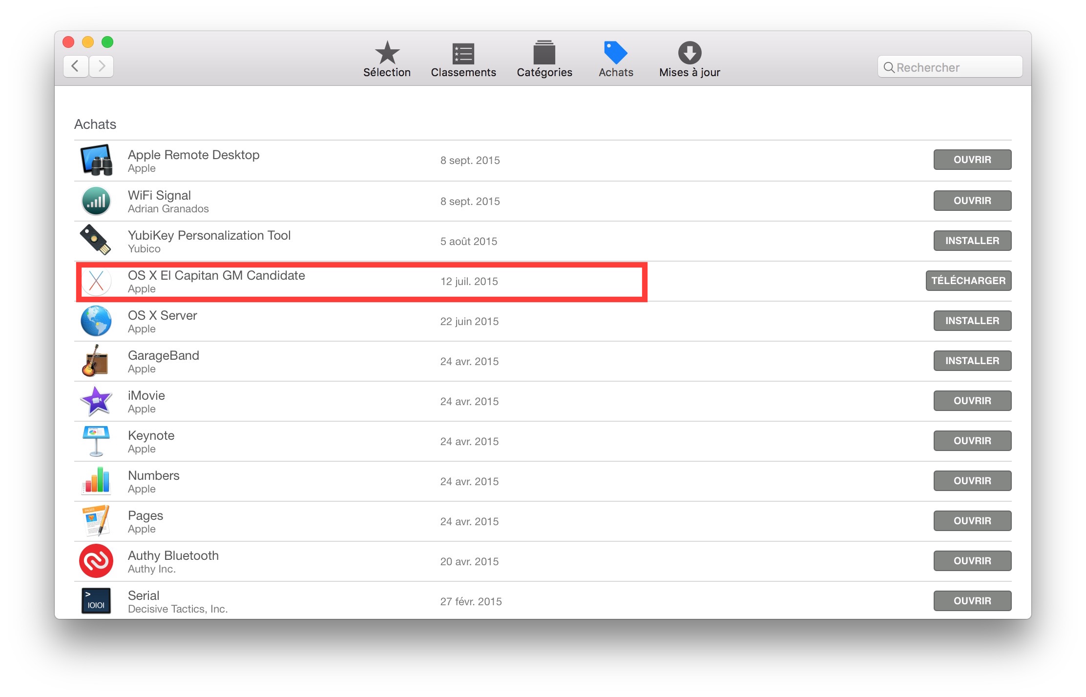 Et là dans votre App Store se téléchargera Mac OS X El Capitan GM Candidate :